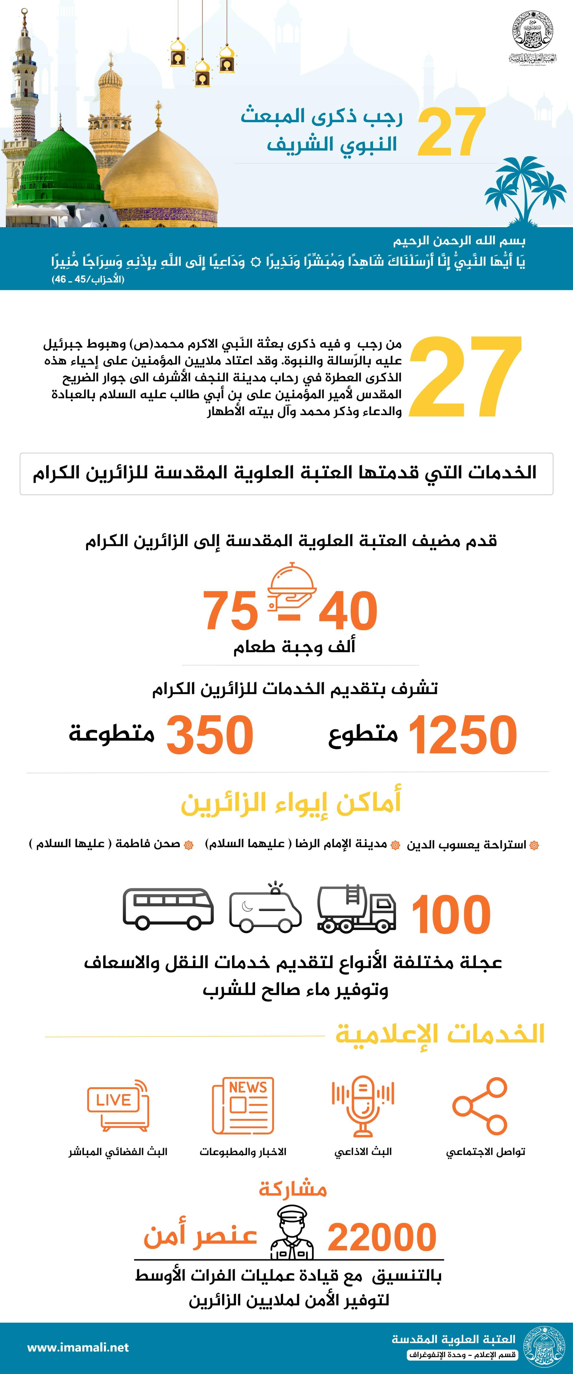 بالإنفوغراف : إحياء زيارة المبعث النبوي الشريف في العتبة العلوية المقدسة