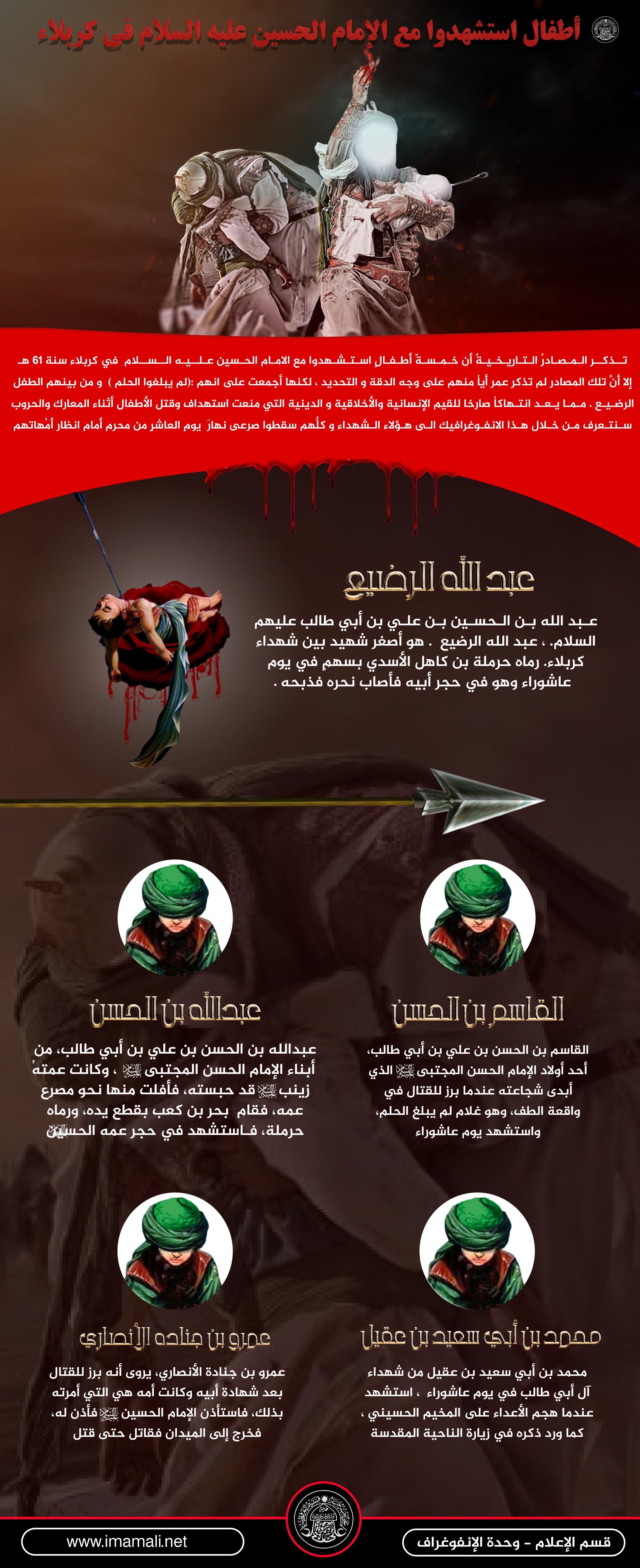 تــذكــر الـمـصـادرٌ الـتـاريـخـيـةٌ أن خـمـسـةً أطـفـالٍ اسـتـشـهدوا مع الامـام الحـسين عـلــيـه الــســلام في كربلاء سنة 61 هـ